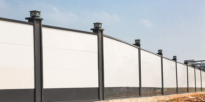 每種施工圍擋款式采用不同的現(xiàn)代美學(xué)視覺設(shè)計,立柱頂部或側(cè)面均可安裝各種造型美觀的路燈,墻體采用易保潔的圍擋專用材料,表面工地灰塵用清水沖洗即可,依然靚麗如新。